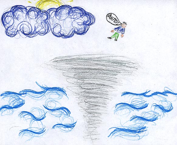 Nellanno 55.554 un uomo che si chiamava Giorgio era l ultimo uomo che ancora viveva sulla terra.Lui viveva con i suoi robot che gli aiutavano a fare la guerra che si dovrebbe svolgere nellanno 55.555 contro i marziani. Quando era il giorno di guerra,Giorgio e i suoi robot andavanbombe. In quel momento una bomba cadeva sulla sua nave e lui cadeva sulla terra esattamente nell occhio dell uragano. Ma in quel momento l uragano faceva una curva e Giorgio toccava l orlo dell uragano e volo`di nuovo nel cielo con la spada in avanti e toccó il marziano piú potente nel cuore e lui morí. Da quel momento i marziani non attaccarono mai piú la terra.