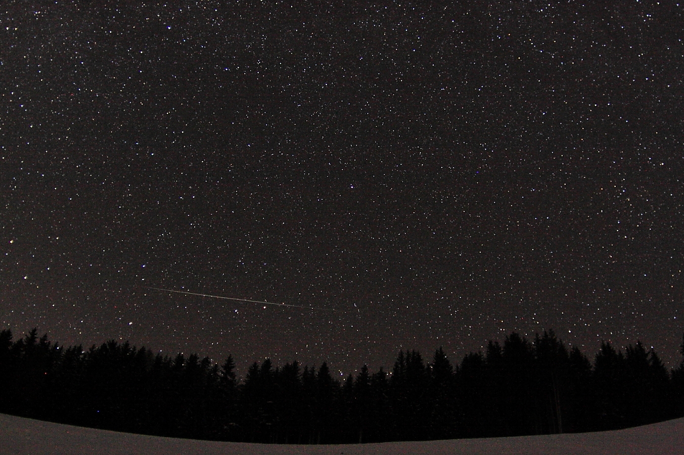 Dreißigsekündige Aufnahme vom 14.12.2009 mit Blickrichtung Osten mit einem hellen Boliden!