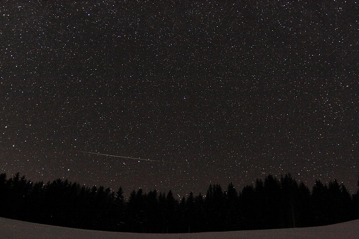 Hier werden Erinnerungen an die Geminiden-Beobachtung der Astrogruppe im Jahr 2009 wach, als es gelang, einen hellen Boliden auf den Chip zu bannen! Das Foto wurde anschließend sogar auf der Homepage der DLR (Deutsches Zentrum für Luft- und Raumfahrt) und der FAZ (Frankfurter Allgemeine Zeitung) veröffentlicht.