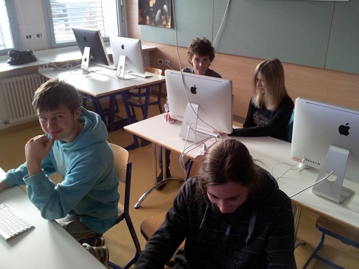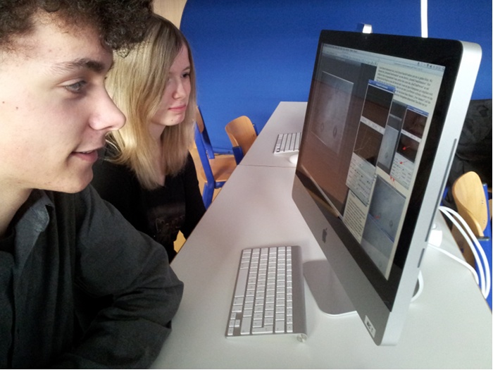 Beim Auswerten der Daten an den iMacs. Lisa, Julian, Jan und Frank (im Gegenuhrzeigersinn).